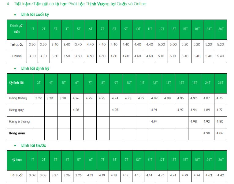 Đối với gói gửi tiết kiệm Lộc Thịnh Vượng, lãi suất VPBank cao nhất là 5,4%, đối với kỳ hạn gửi tiền từ 15 tháng trở lên.