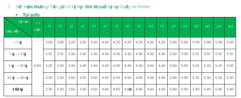 Thông tin về lãi suất chỉ mang tính chất tham khảo và có thể thay đổi trong từng thời kỳ. Vui lòng liên hệ điểm giao dịch ngân hàng gần nhất hoặc hotline để được tư vấn cụ thể.