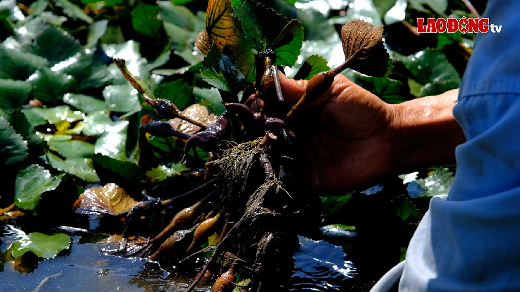 “Thường từ lúc xuống giống đến khi được 90, 95 ngày, tôi sẽ bắt đầu thăm chừng. Nếu lá ấu ngả màu tôi sẽ bắt đầu thu hoạch theo luống. Khi đó, trái ấu hái lên sẽ vừa ăn, ngọt, bột. Còn nếu thu hoạch trễ, trái ấu sẽ rụng, gây thất thoát”, anh Đấu chia sẻ.