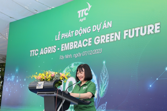 Bà Huỳnh Bích Ngọc - Chủ tịch HĐQT TTC AgriS khai mạc lễ phát động dự án, kêu gọi sự đồng hành tích cực của cộng đồng và các bên liên quan
