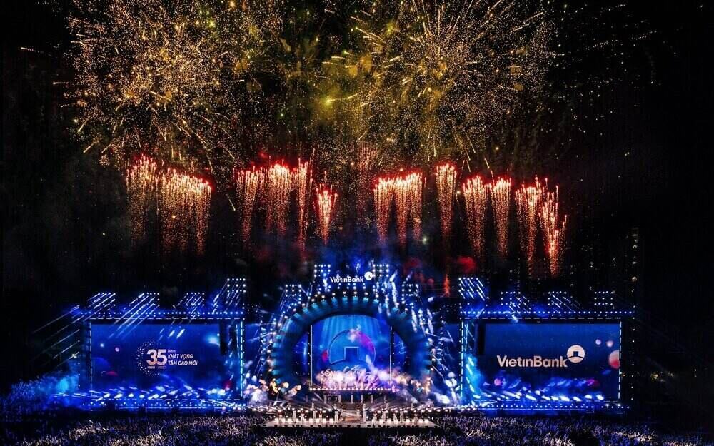Tiết mục múa đương đại mở màn cùng pháo hoa rực rỡ. Ảnh: VietinBankĐể làm nóng bầu không khí, Sunset show đã mang đến ngọn lửa trẻ trung, nhiệt huyết lan toả đến hàng ngàn người hâm mộ tại SVĐ Phú Thọ.