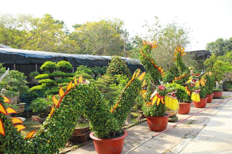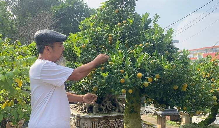 Ông Xuân ghép cây quất thành hình con rồng uốn lượn đẹp mắt dịp cận Tết. Ảnh: Tâm Anh Nguồn: https://laodong.vn/kinh-doanh/vuon-quat-doc-la-gan-300-trieu-donggoc-o-ha-noi-1287877.ldo