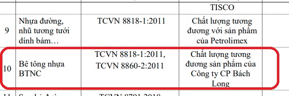 Hàng loạt gói thầu có sử dụng vật liệu Bê tông nhựa tại Lạng Giang xuất hiện sản phẩm Bê tông nhựa của Công ty Cổ phần Bách Long tại hồ sơ mời thầu. Ảnh: Chụp tài liệuBất thường hơn, trong các gói thầu nói trên, một doanh nghiệp có tên Công ty Cổ phần Bách Long thậm chí còn đóng 2 vai, vừa là nhà cung cấp vật liệu và vừa là nhà thầu tham gia các gói thầu của BQL huyện Lạng Giang.